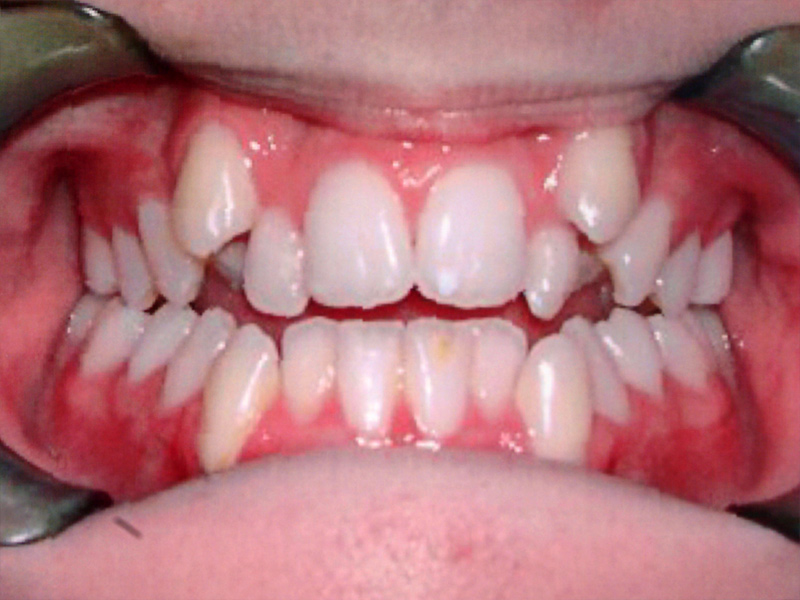 Teenager presented with a constricted upper arch, crowding on the upper and lower arch. No permanent teeth were extracted.